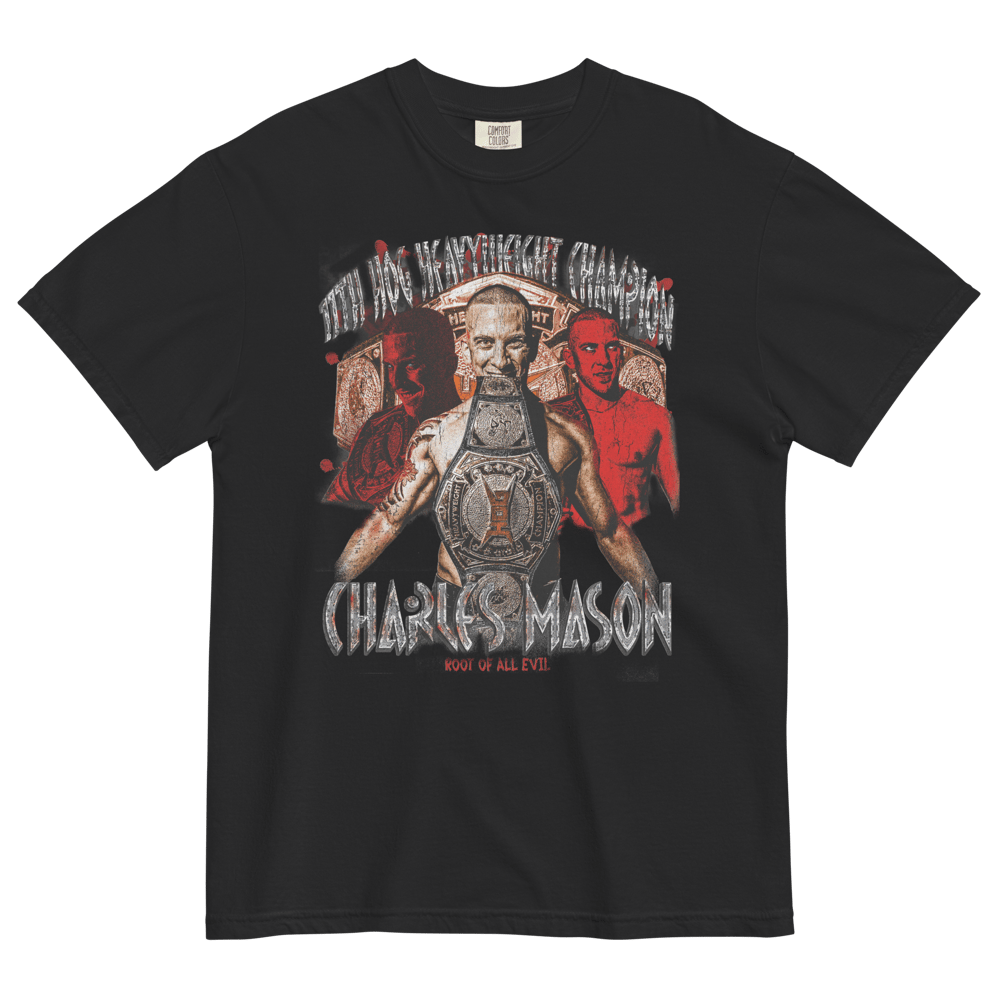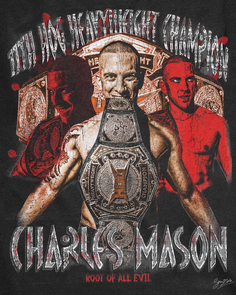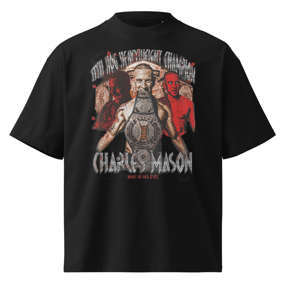 Celebrate the new HOG HEAVYWEIGHT CHAMPION Charles Mason with this new shirt. Comes in oversized and regular fit variants